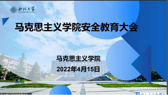 为切实做好学院疫情防控工作,提高同学们在校期间的安全防范意识,4月15日下午,马克思主义学院召开了线上疫情防控安全教育大会。院党委副书记邵平、马克思主义学院全体学生参加会议,会议由辅导员刘娟主持。