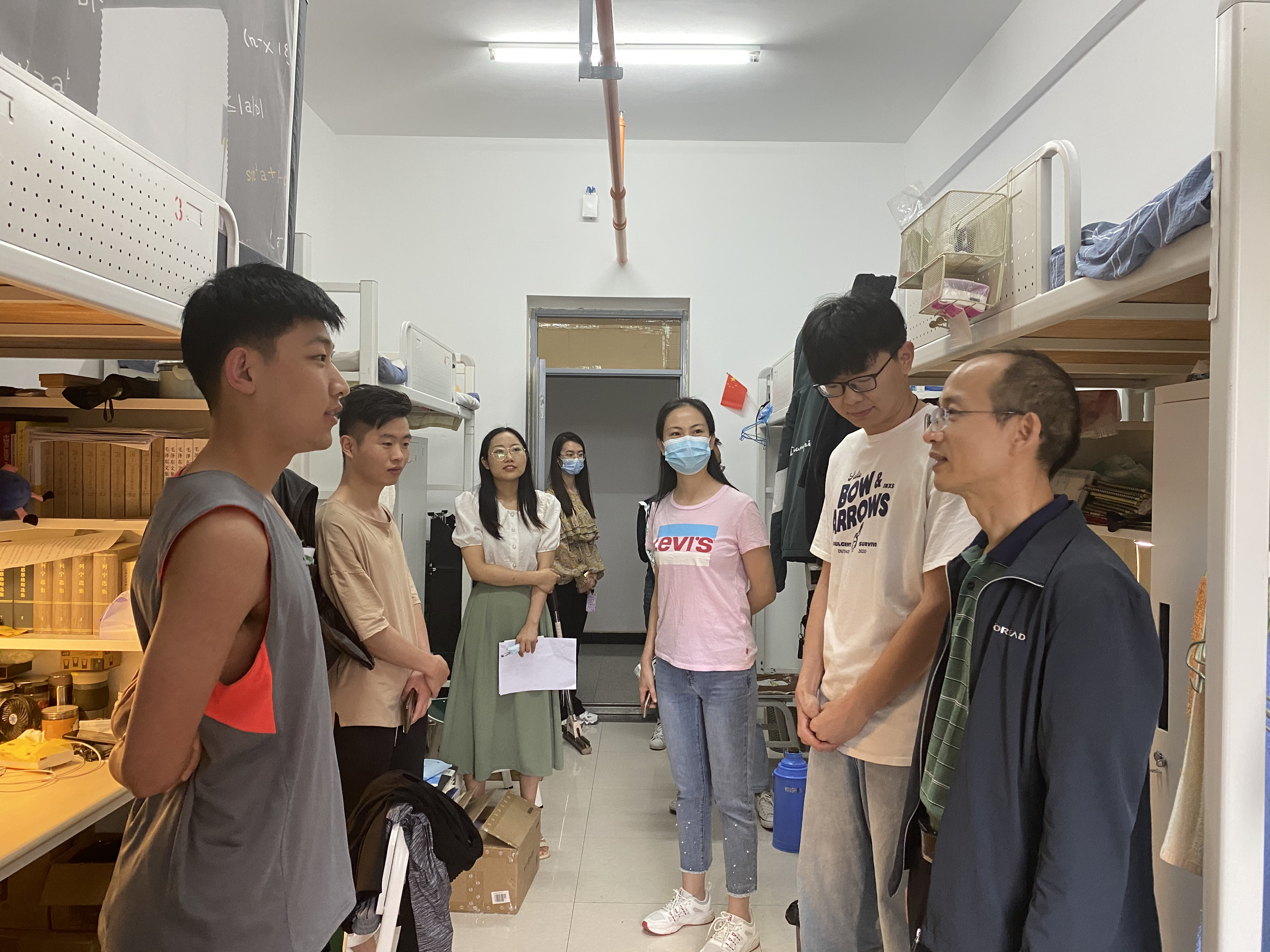 走访中,学院领导与同学们进行了亲切交谈,为同学们送上节日的美好祝福,详细了解了同学们近期生活和学习情况,以及大家近期生活学习等方面的急难愁盼问题,嘱咐同学们做好个人防护,积极配合学校的疫情防控措施,并利用假期努力提高内在素质,锤炼扎实本领。