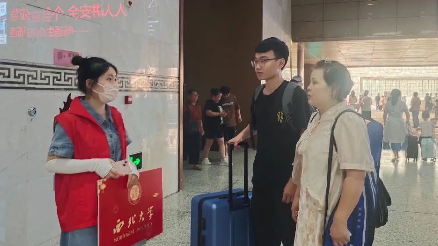 喧嚣的车站中,有一份专属马院的精诚等待。志愿者们手持醒目的迎新牌翘首以盼,期待与新生的目光交汇。确认眼神,志愿者们热情迎去,接过沉甸甸的行李箱也接过一份信任与责任,指引并带领新生和家长前往直达学校的车辆。热情洋溢的身影在熙熙攘攘的车站成为一道道靓丽的风景线。