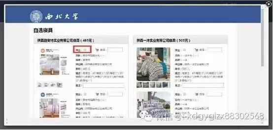床上用品选择——在这一步骤,小编要提醒各位,千万不要在选择寝具上再次犯选择恐惧症而拖延,5分钟无操作将视为自动退出系统,可重新登录、操作。陕西路安特实业有限公司及陕西一沣实业有限公司都是经过学校实地考察、招标脱颖而出的大厂家,物美价廉。