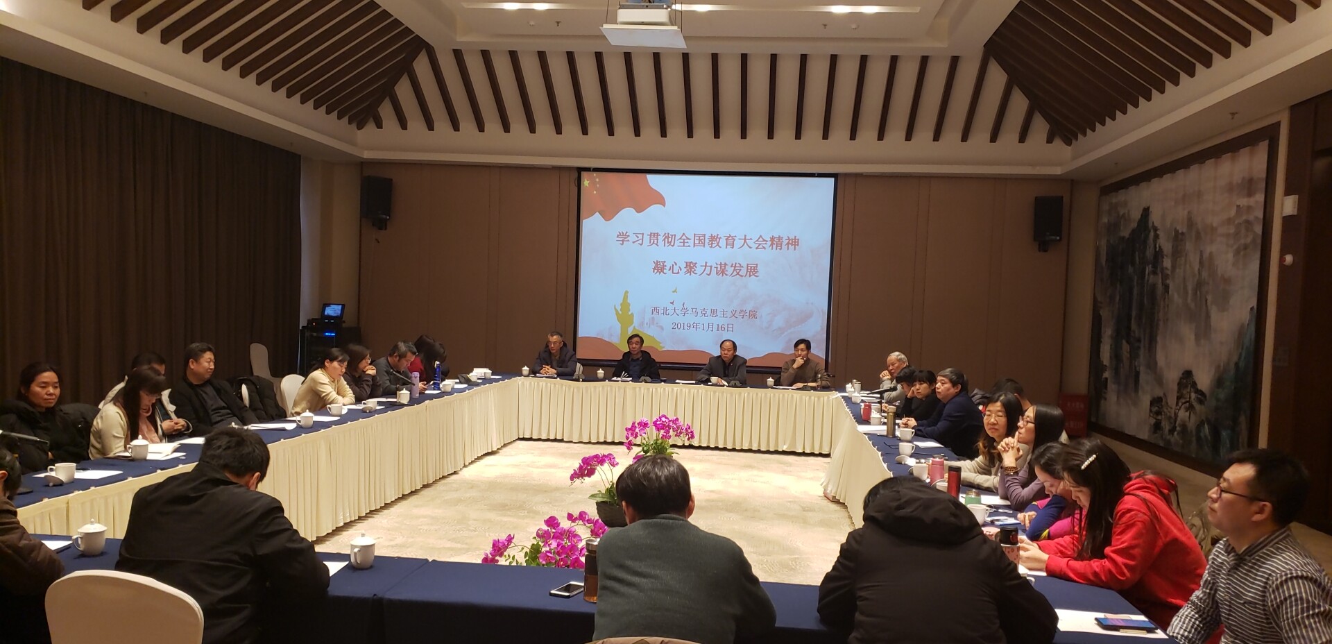 在集体备课会上,学院领导班子成员对各自分管的工作进行了总结和展望,并对2019年的工作提出了具体要求。西北大学青年学术英才张永奇、王青、陕西省教学标兵张少博、陕西省微课展示一等奖获得者齐钊等教师就个人在教学、科研方面进行了经验分享,并在教学、科研方面遇到的问题进行了交流。学院杨洪教授、特聘教授姚文琦等结合自身工作经验就学院发展提供了宝贵的个人意见和建议。参会教师就学院发展中各方面的问题畅所欲言,为学院早一步进入全国重点马克思主义建言献策。