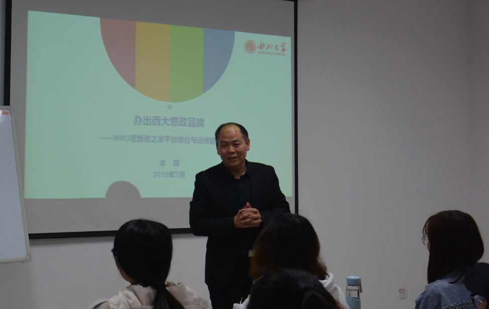 3月26日晚,校党委宣传部新媒体中心主任李琛老师应邀来我院作了题为《办出西大思政品牌——思想者之家平台定位与运维能力提升》的报告。我院院长、“思想者之家”指导老师王强教授主持报告会。