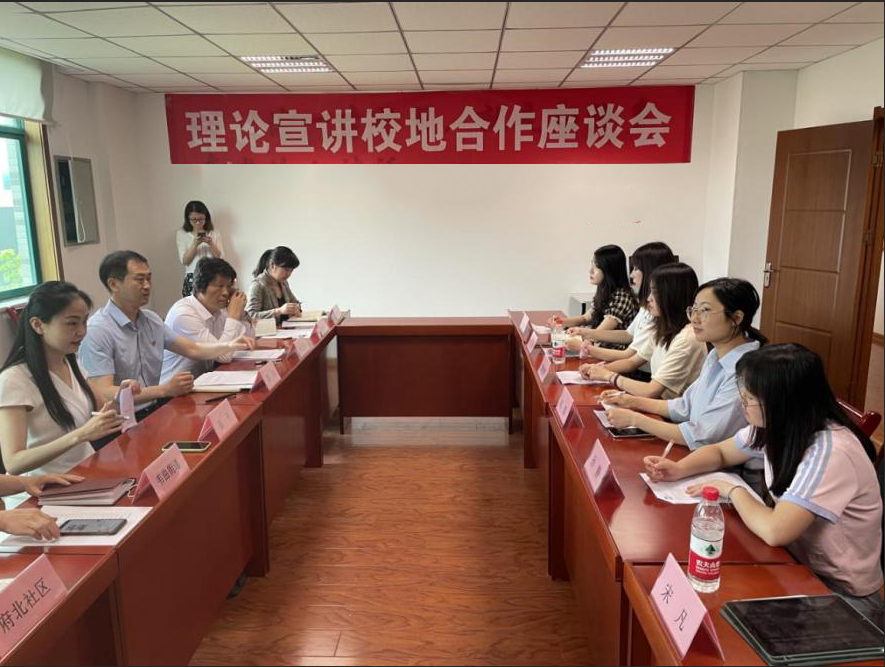 5月14日,马克思主义学院党委与长安区委宣传部召开理论宣讲校地合作座谈会暨必赢242net官网大学生理论宣讲实践基地授牌仪式。长安区委宣传部负责人、马克思主义学院学生工作负责人,长安区郭杜街道、韦曲街道,凤林社区、樱花社区等街道和社区负责人,马克思主义学院“红桅杆”思政理论学习社团学生代表参加了此次活动。