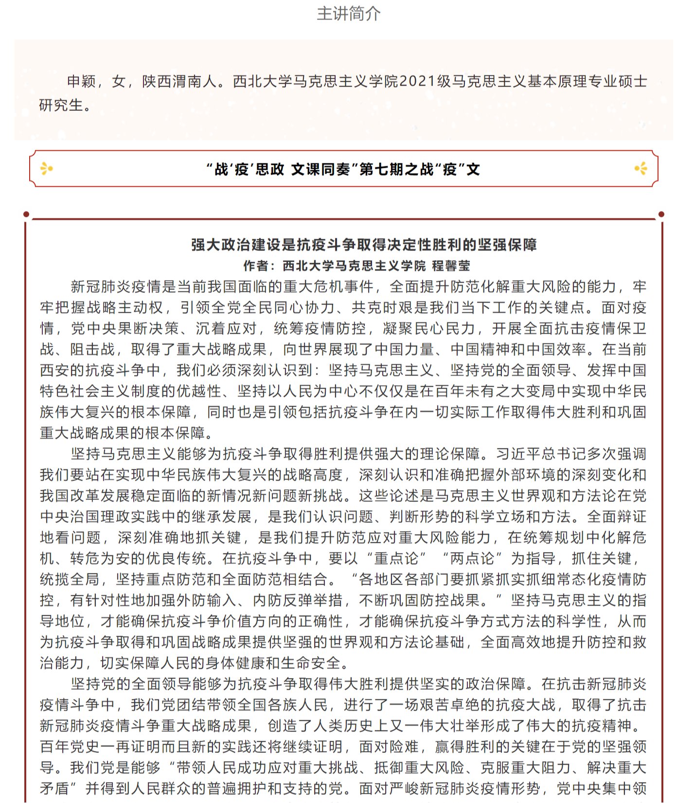 西大马院:战疫思政 文课同奏 第七期